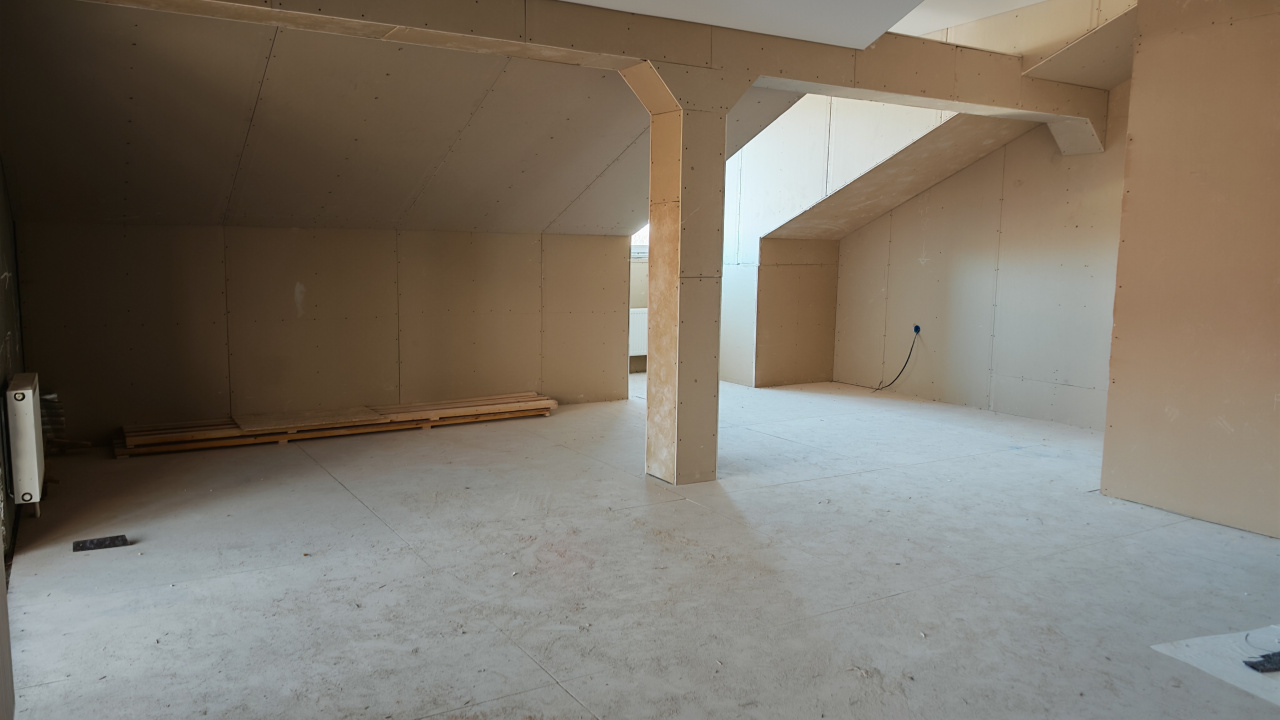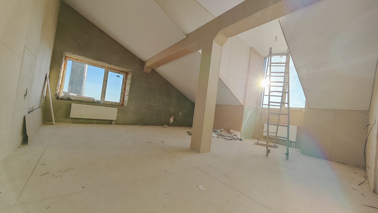 Квартира с большой прихожей с просторным раздельным сан узлом, комната студия + большое помещение под нишей крыши.